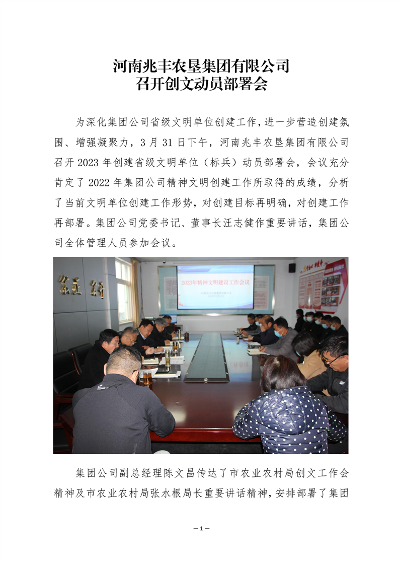 · 河南兆豐農墾集團有限公司組織召開文明單位創建動員部署會