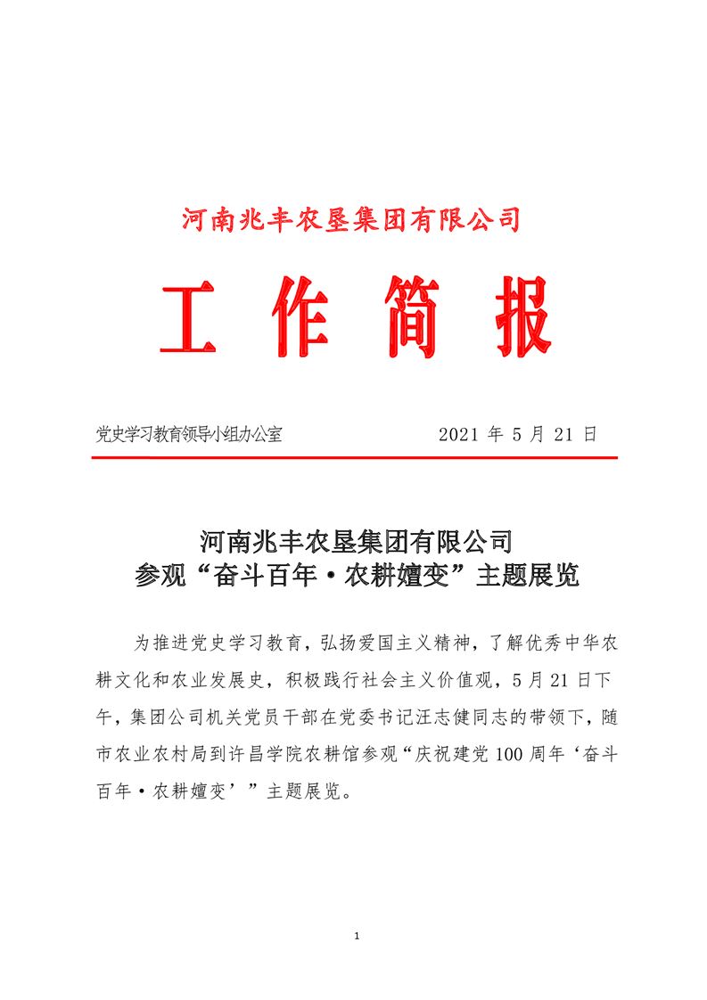 · 河南兆豐農(nóng)墾集團(tuán)有限公司 參觀“奮斗百年·農(nóng)耕嬗變”主題展覽