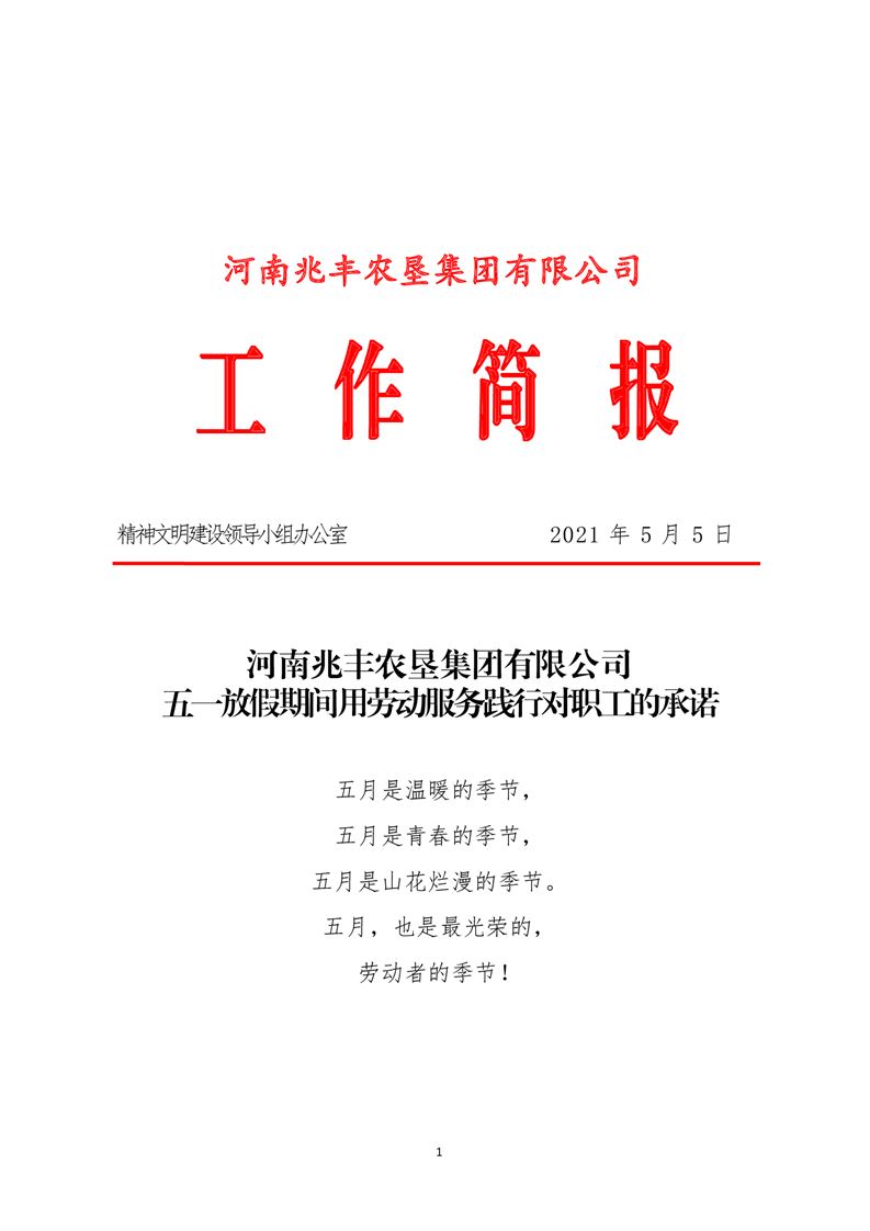 · 河南兆豐農墾集團有限公司 五一放假期間用勞動服務踐行對職工的承諾