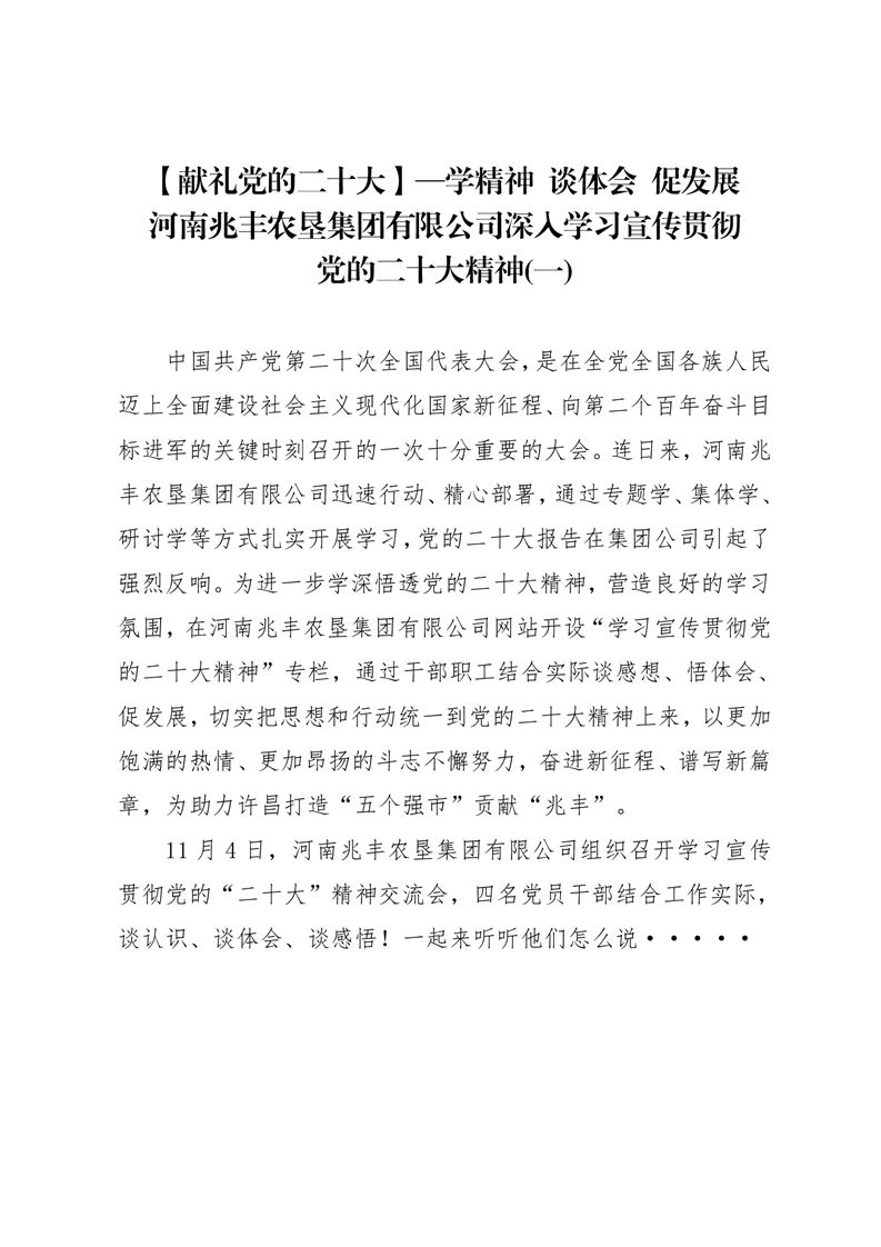· 【獻禮黨的二十大】—學精神 談體會 促發展 河南兆豐農墾集團有限公司深入學習宣傳貫徹 黨的二十大精神(一)