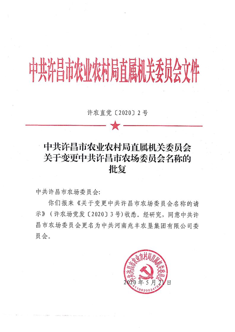 · 關(guān)于變更中共許昌市農(nóng)場委員會名稱的批復