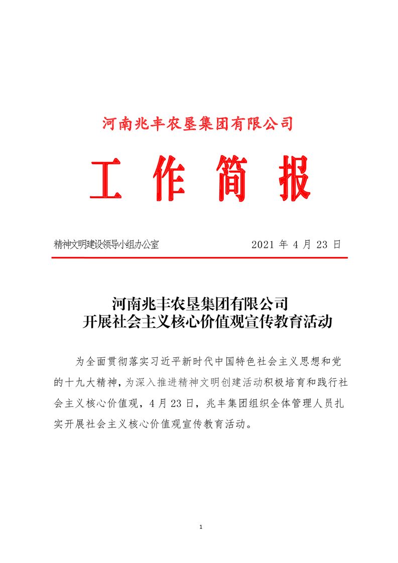 · 河南兆豐農(nóng)墾集團(tuán)有限公司 開(kāi)展“社會(huì)主義核心價(jià)值觀”宣傳教育活動(dòng)