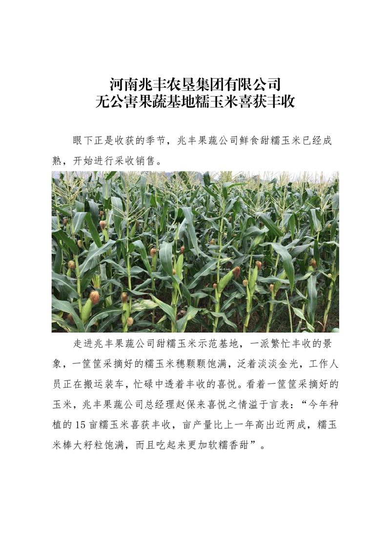 · 河南兆豐農墾集團有限公司 無公害果蔬基地糯玉米喜獲豐收