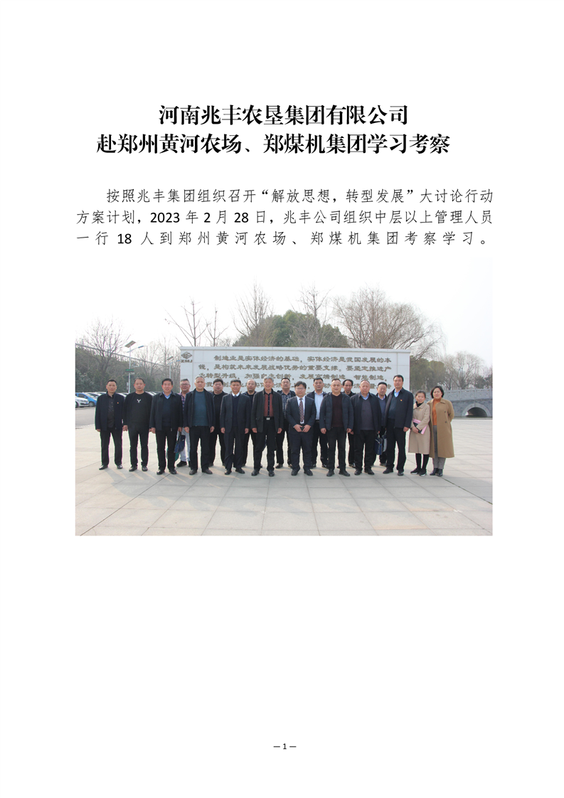 · 河南兆豐農(nóng)墾集團(tuán)有限公司組織人員赴鄭煤機(jī)集團(tuán)、黃河農(nóng)場(chǎng)考察學(xué)習(xí)