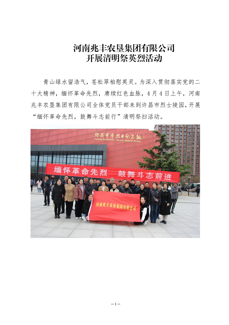 · 河南兆豐農(nóng)墾集團有限公司開展“清明祭英烈”活動