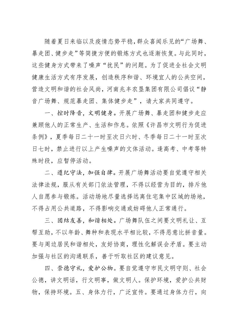 · “靜音廣場舞,規(guī)范暴走團、健步走”倡議書