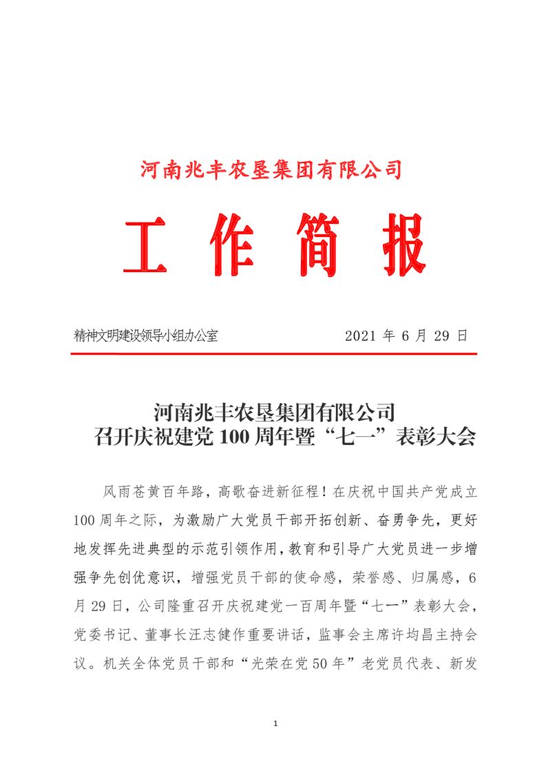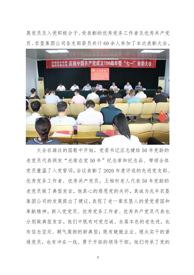 · 河南兆豐農墾集團有限公司 召開慶祝建黨100周年暨“七一”表彰大會