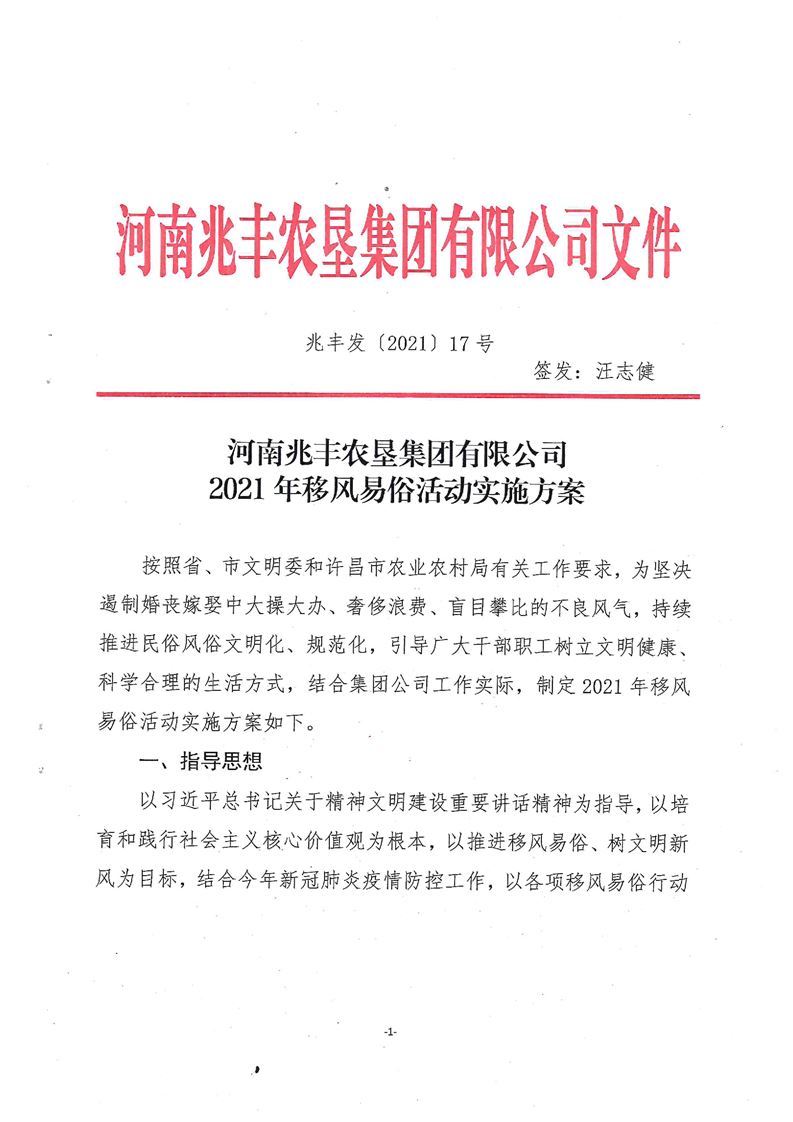 · 河南兆豐農(nóng)墾集團有限公司 2021年移風(fēng)易俗活動實施方案
