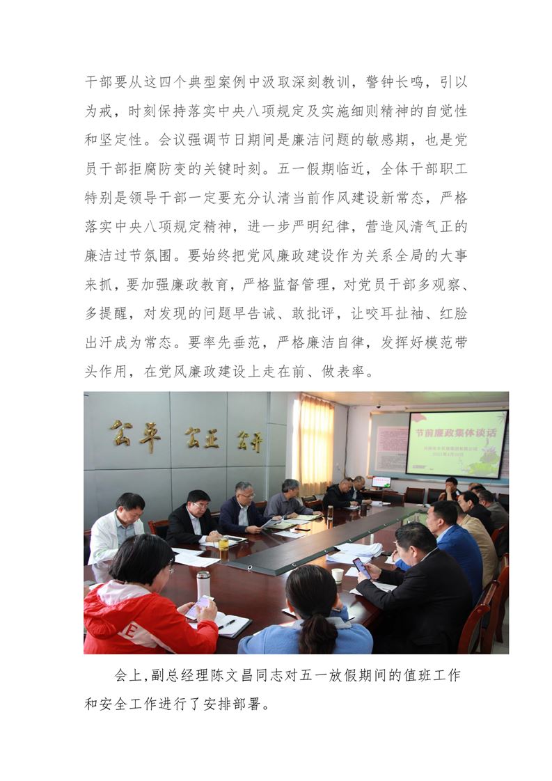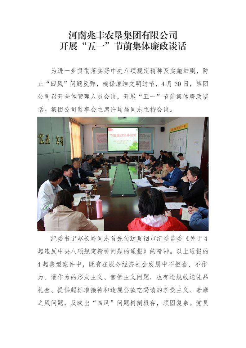 · 河南兆豐農(nóng)墾集團(tuán)有限公司 開(kāi)展“五一”節(jié)前集體廉政談話