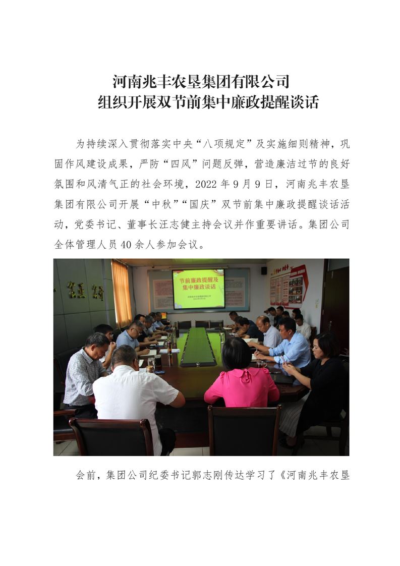 · 河南兆豐農(nóng)墾集團(tuán)有限公司 組織開展雙節(jié)前集中廉政提醒談話