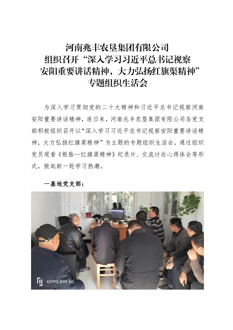 · 河南兆豐農墾集團有限公司組織召開“深入學習習近平總書記視察安陽重要講話精神,大力弘揚紅旗渠精神” 專題組織生活會