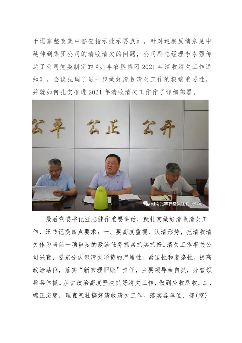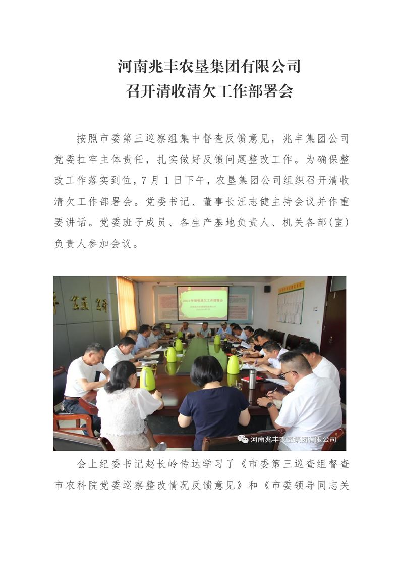 · 河南兆豐農墾集團有限公司 召開清收清欠工作部署會