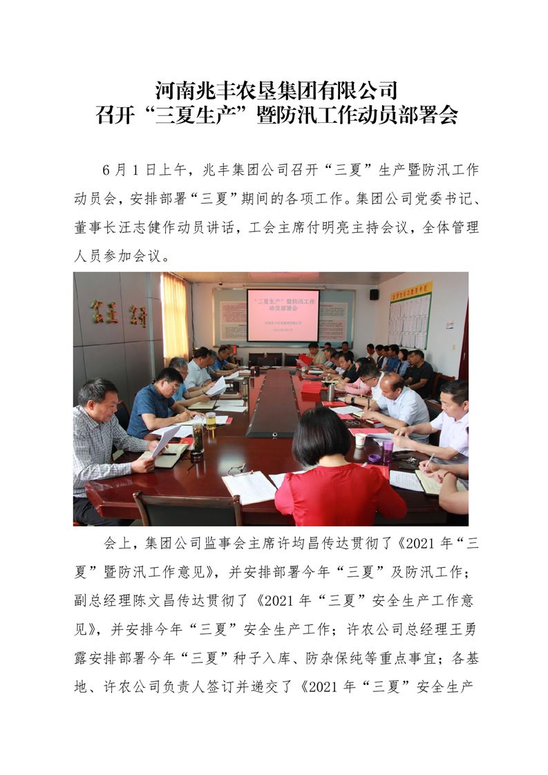 · 河南兆豐農墾集團有限公司 召開“三夏生產”暨防汛工作動員部署會
