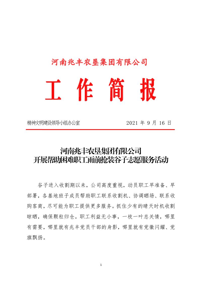 · 河南兆豐農墾集團有限公司 開展幫助困難職工雨前搶裝谷子志愿服務活動