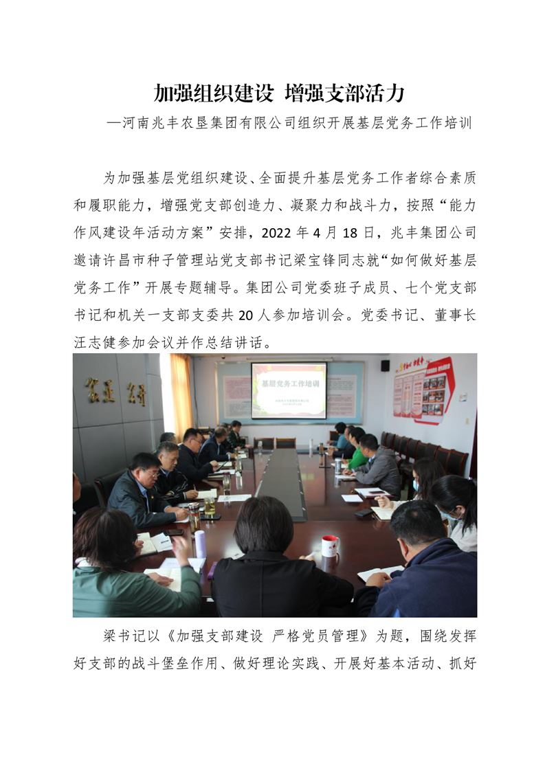 · 加強組織建設 增強支部活力 —河南兆豐農墾集團有限公司組織開展基層黨務工作培訓