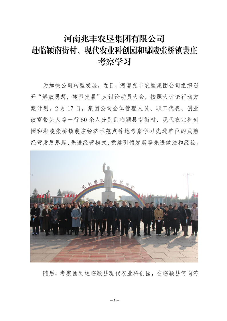 · 河南兆豐農墾集團有限公司赴南街村集團、鄢陵張橋鎮裴莊考察學習