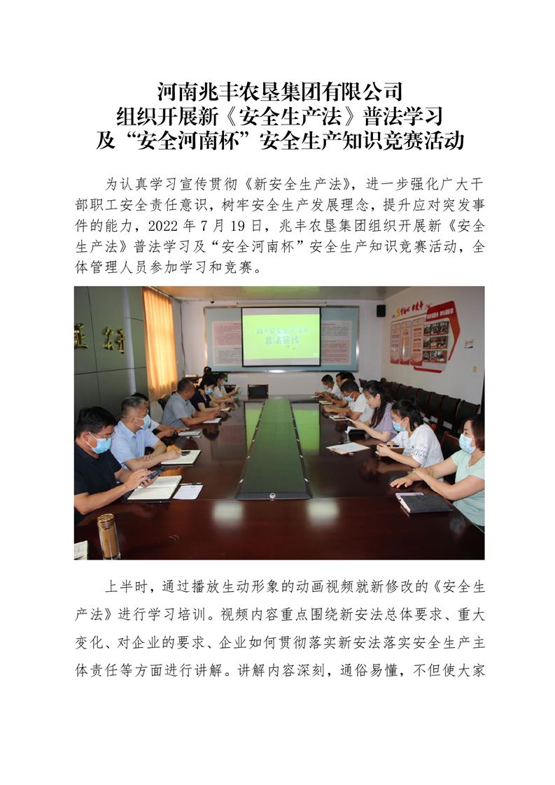 · 河南兆豐農(nóng)墾集團有限公司 組織開展新《安全生產(chǎn)法》普法學(xué)習(xí) 及“安全河南杯”安全生產(chǎn)知識競賽活動