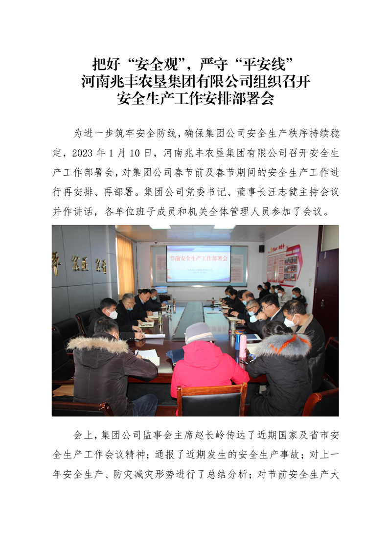 · 把好“安全觀”,嚴(yán)守“平安線” 河南兆豐農(nóng)墾集團(tuán)有限公司組織召開(kāi) 安全生產(chǎn)工作安排部署會(huì)