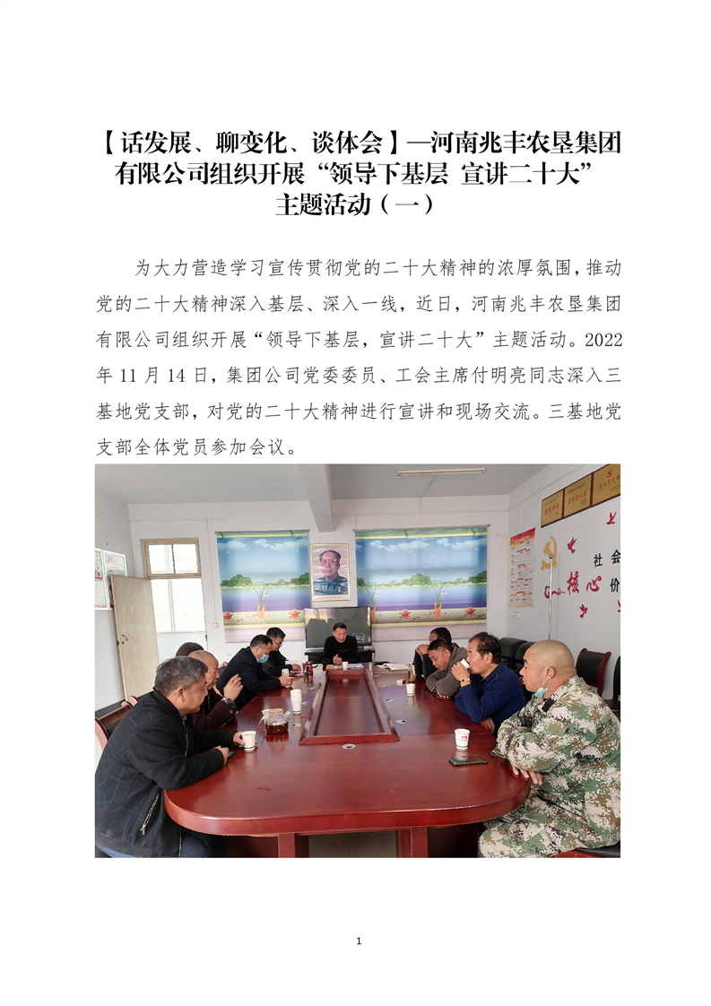 · 【話發展、聊變化、談體會】—河南兆豐農墾集團有限公司組織開展“領導下基層 宣講二十大” 主題活動(一)