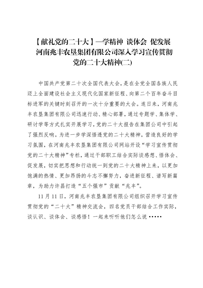 · 【獻禮黨的二十大】—學精神 談體會 促發展 河南兆豐農墾集團有限公司深入學習宣傳貫徹 黨的二十大精神(二)