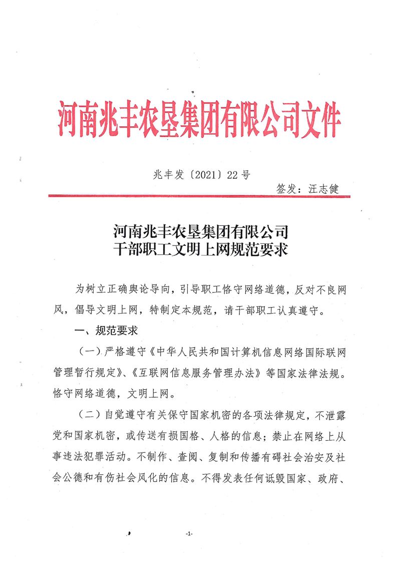 · 河南兆豐農墾集團有限公司 干部職工文明上網規范要求