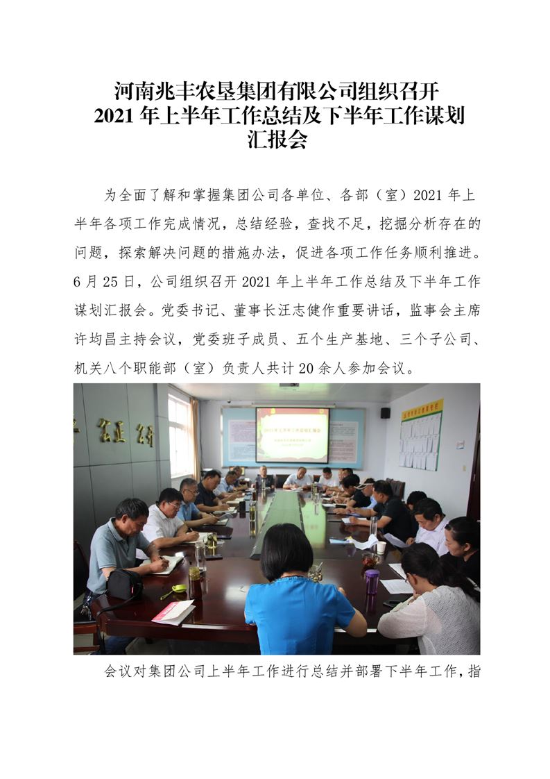· 河南兆豐農(nóng)墾集團(tuán)有限公司 組織召開2021年上半年工作總結(jié)及下半年工作謀劃 匯報(bào)會