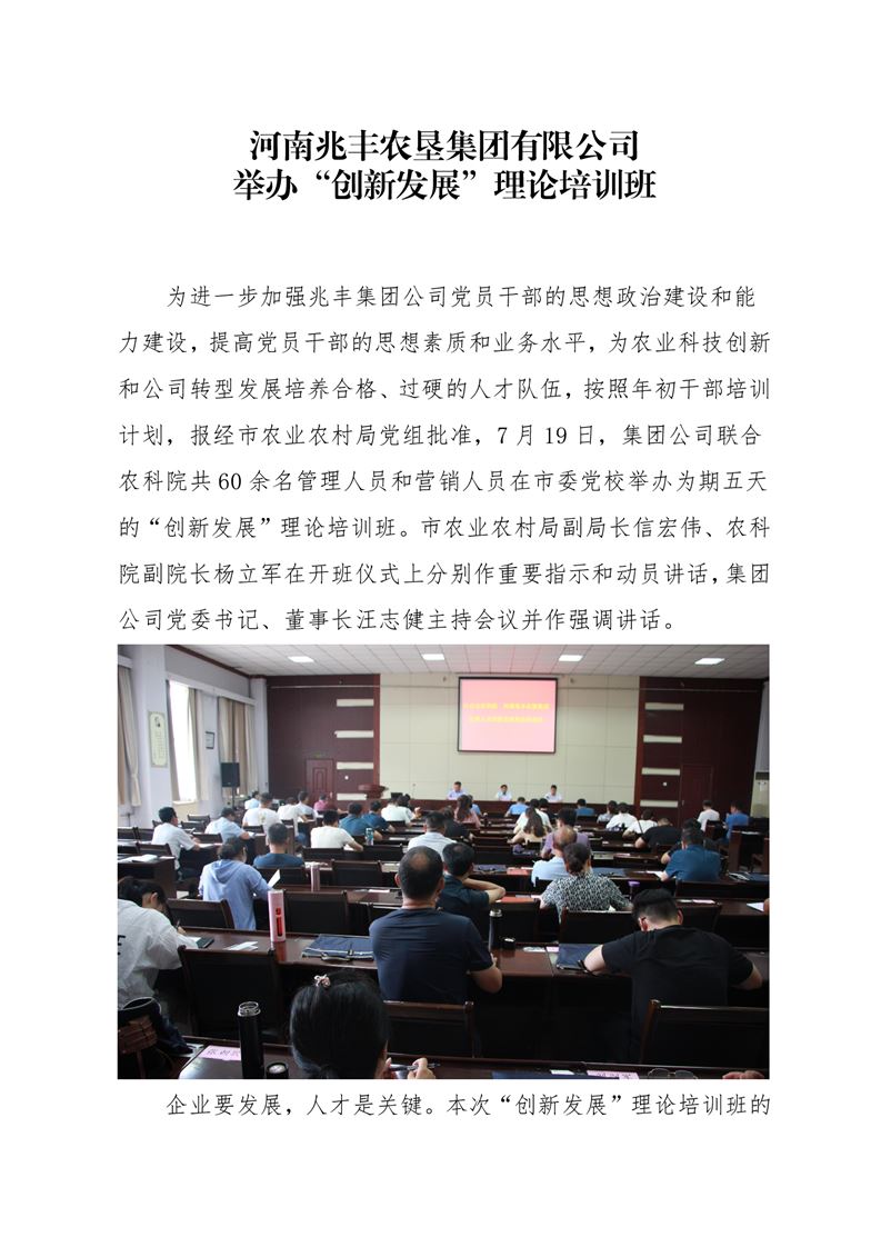 · 河南兆豐農(nóng)墾集團有限公司 舉辦“創(chuàng)新發(fā)展”理論培訓(xùn)班