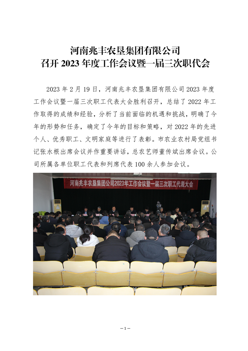· 河南兆豐農墾集團有限公司組織召開一屆三次職工代表大會