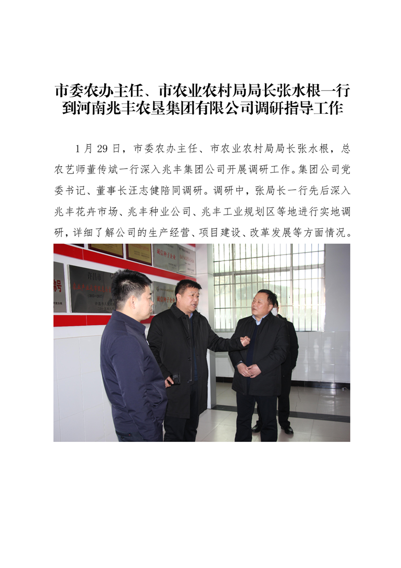 · 市委農辦主任、市農業農村局局長張水根一行到河南兆豐農墾集團有限公司調研指導工作