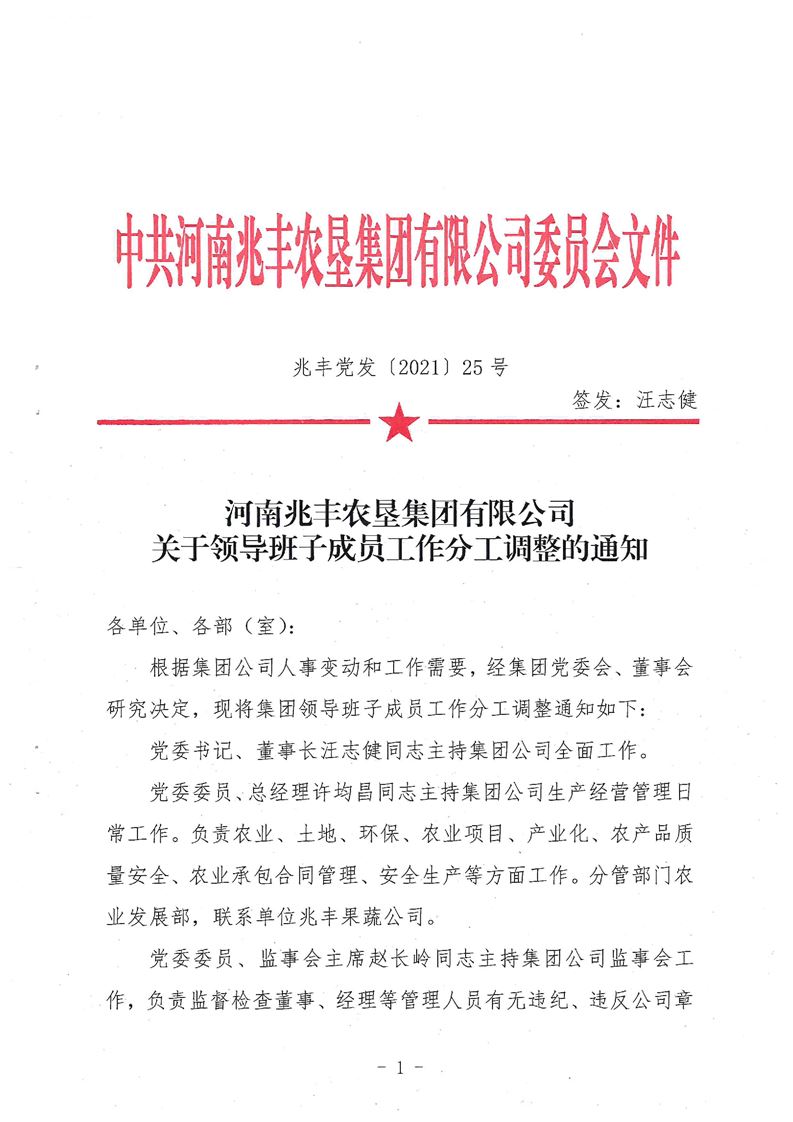 · 關于領導班子成員工作分工調整的通知
