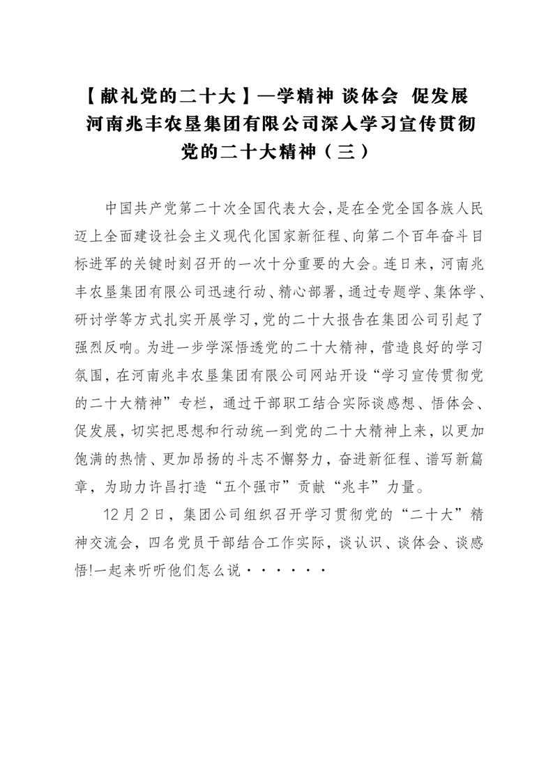 · 【獻禮黨的二十大】—學精神 談體會 促發展? 河南兆豐農墾集團有限公司深入學習宣傳貫徹黨的二十大精神(三)