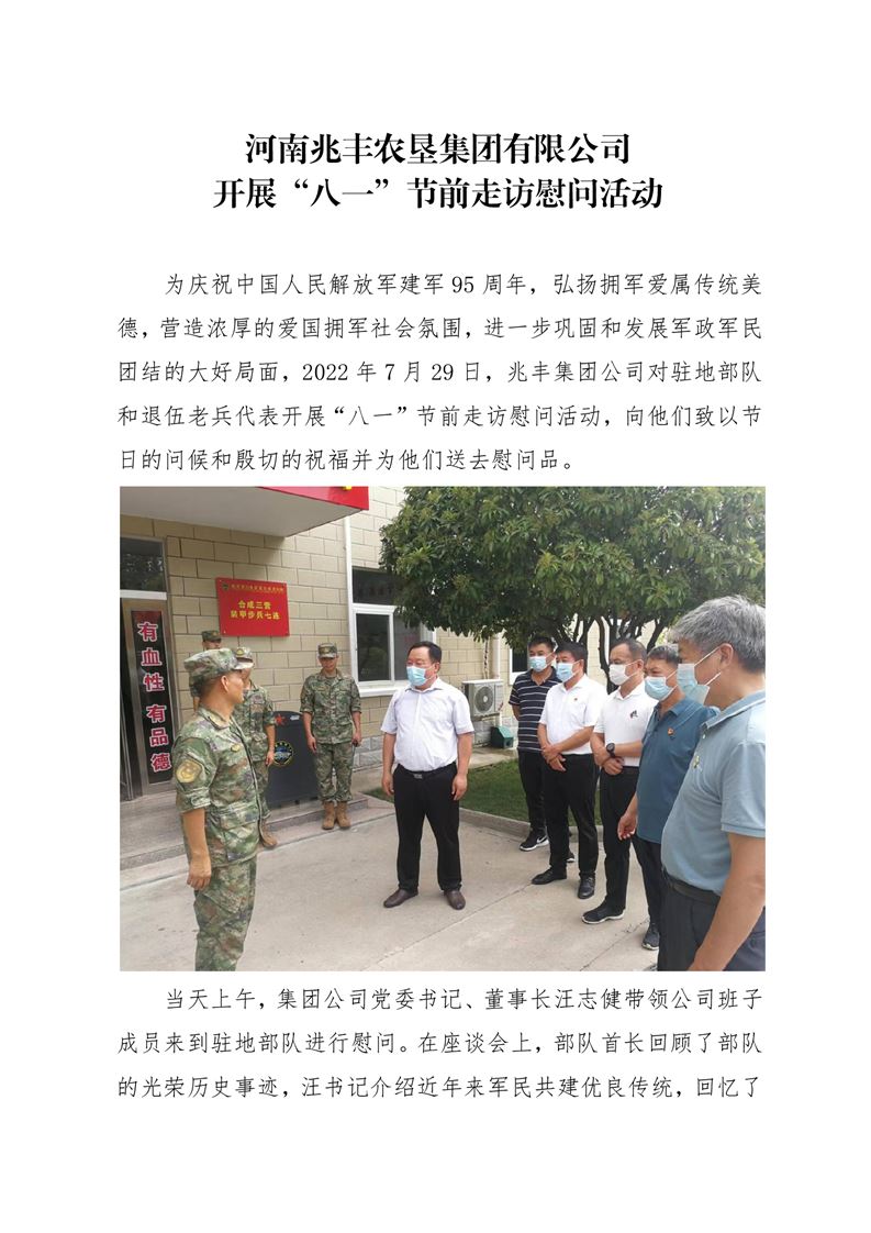 · 河南兆豐農(nóng)墾集團(tuán)有限公司 開展“八一”節(jié)前走訪慰問活動(dòng)