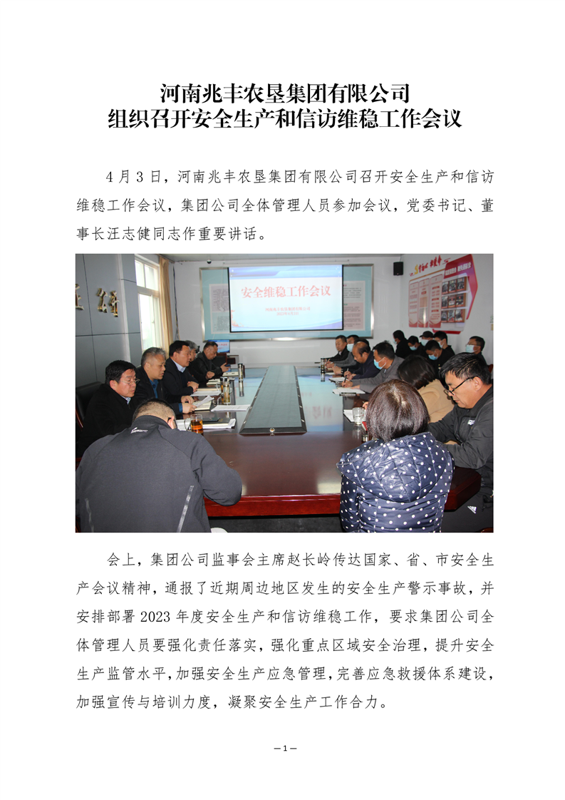 · 河南兆豐農墾集團有限公司組織召開安全生產維穩動員部署會