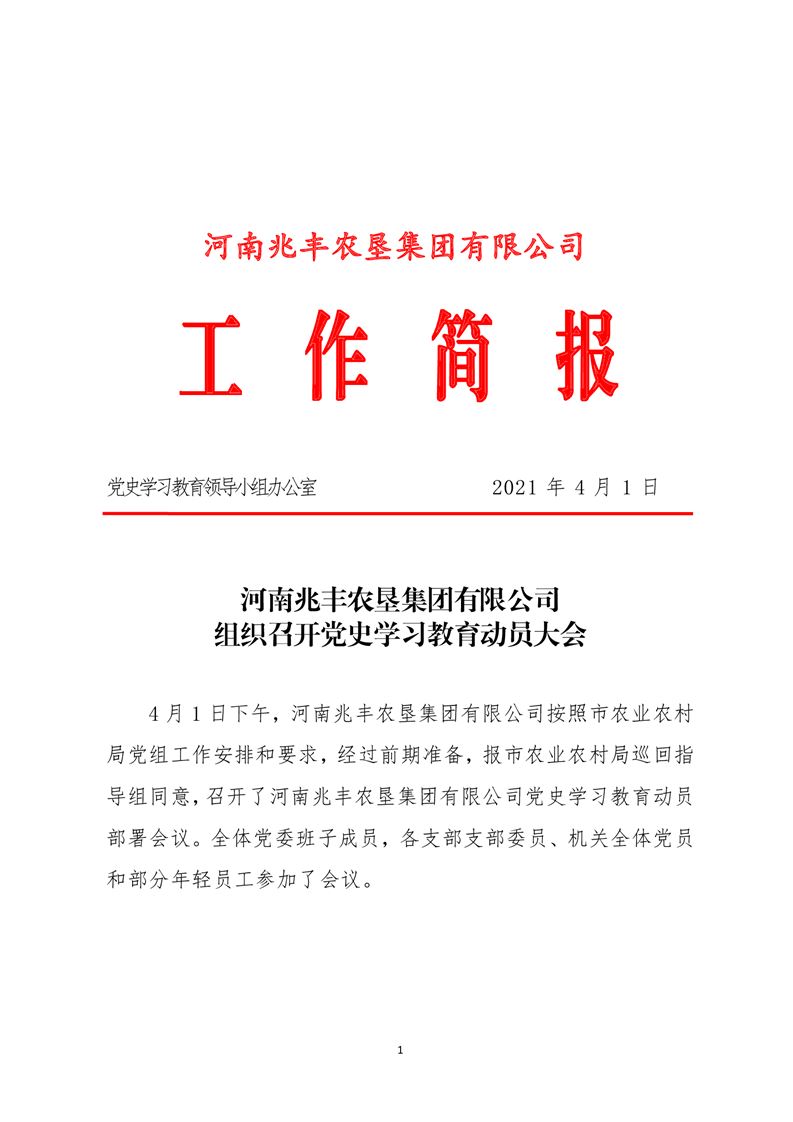 · 河南兆豐農(nóng)墾集團有限公司 組織召開黨史學習教育動員大會